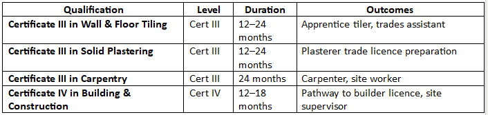 Australia continues to experience a severe shortage of skilled tradespeople, especially in the construction sector, where demand is at a record high. Among the most sought-after trades are tiling, solid and fibrous plastering, and carpentry. These occupations play a crucial role in housing construction, renovation, and commercial building projects — making them essential for Australia’s long-term infrastructure growth.